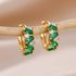 Boho Green Cubic Zirconia Hoop Earrings, Gold Zircon Hoops, 18K Gold Hoop Earrings, Dainty Minimalist Green Earrings for Women, Gift for Her