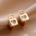 ♥ Punk 18K Gold Lock Earrings, Boho Crystal Heart Lock Stud Earrings, Cubic Zirconia Gold Punk Lock Heart, Dainty Minimalist for Women ♥