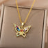 Boho Butterfly Crystal Zircon Pendant, 18K Gold Layered Yogi Necklace, Dainty Minimalist Jewelry, Delicate Handmade for Women, Gift for Her