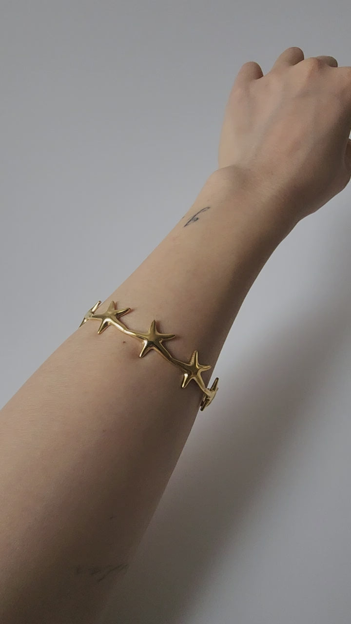 18K Gold Dainty Minimalist Star Bangle Bracelet Celestial Womens Jewelry